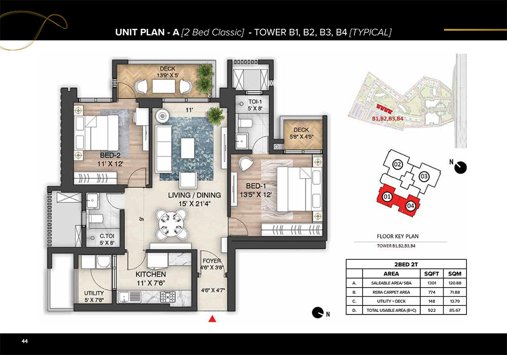| 2 Bed Classic (2B 2T) | 1113 - 1152 Sq.Ft | ₹ 1.29 Cr* Onwards | |
