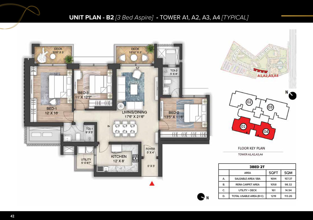 | 3 Bed Aspire (3B 3T) | 1808 Sq.Ft. | ₹ 2.09 Cr* Onwards | |
