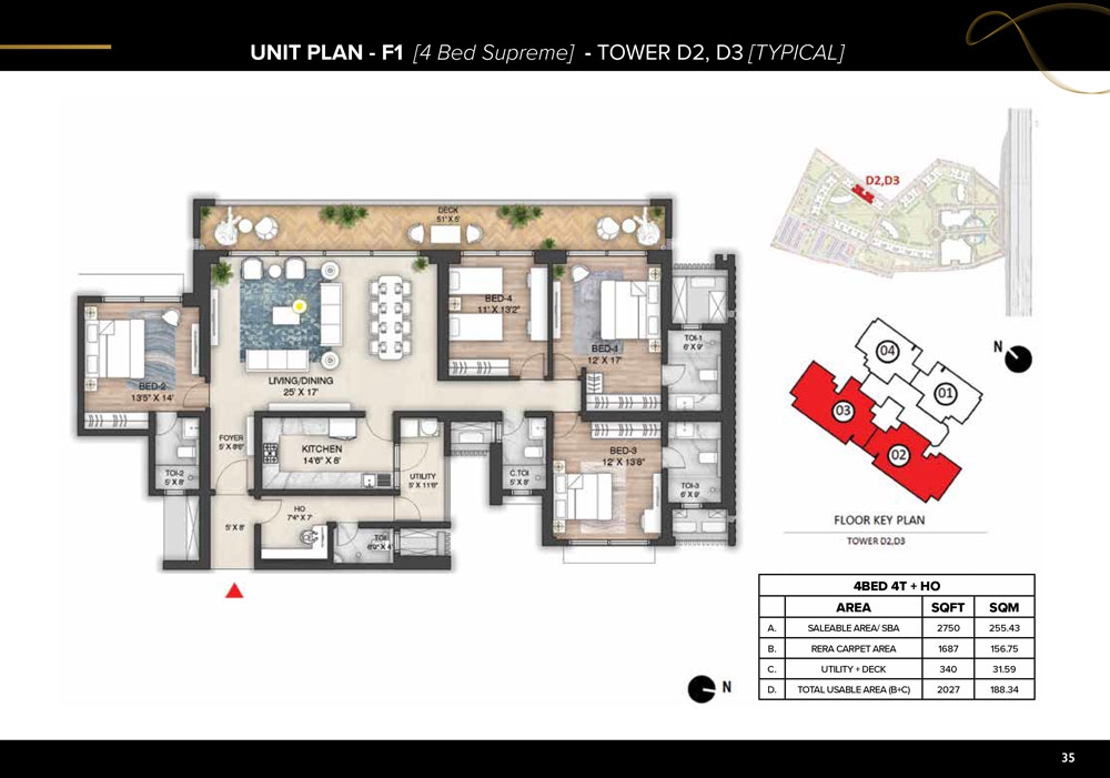 | 4 Bed Supreme (4B 4T+HO) | 2492 - 2786 Sq.Ft. | ₹ 2.87 Cr* Onwards |